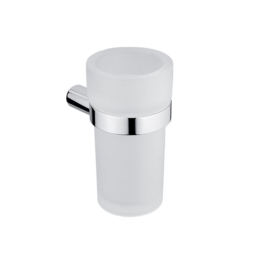 Držák na kartáčky se sklenkou z matovaného skla.