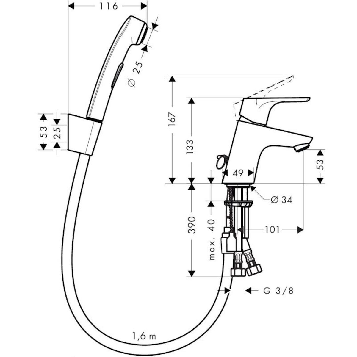 Bidetová baterie Focus, chrom, stojánková, bez výpustě, Hansgrohe 31926000