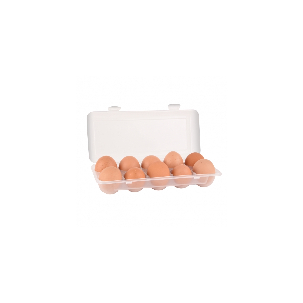 Hledáte-li praktičtější náhradu za papírový obal na vejce, tento bílý box zaručí bezpečné přenášení a skladování až deseti kusů vajec. Je vyrobený z kvalitního plastu, v případě znečištění ho proto stačí jednoduše omýt a znovu použít.