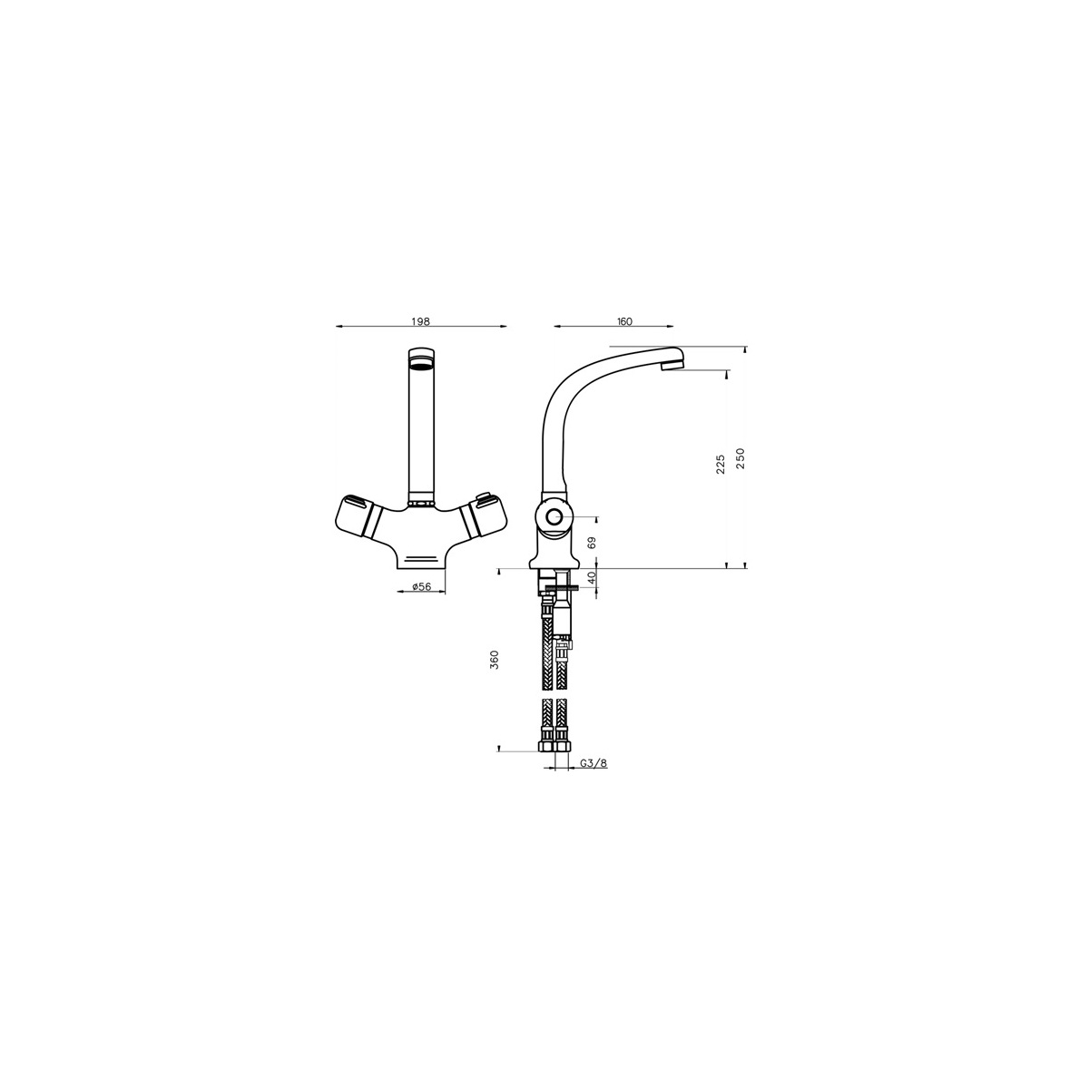 Dřezová baterie Aquamat, chrom, stojánková, Novaservis 2613,0