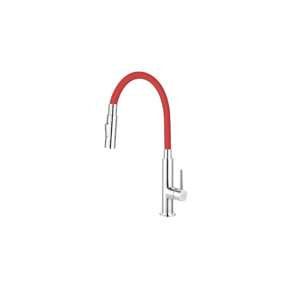 Moderní design v kombinaci s vysokou kvalitou, to je stojánková dřezová baterie Novaservis Ferro s FLEXI ramenem a 2polohovou SLIM koncovkou pro normální proud vody nebo spršku. Červené provedení ramena doplňují odolné chromové prvky. Na první pohled je jasné, že se tato baterie stane dominantou každé kuchyně. Životnost baterie výrazně prodlužuje také 25mm keramická kartuše.