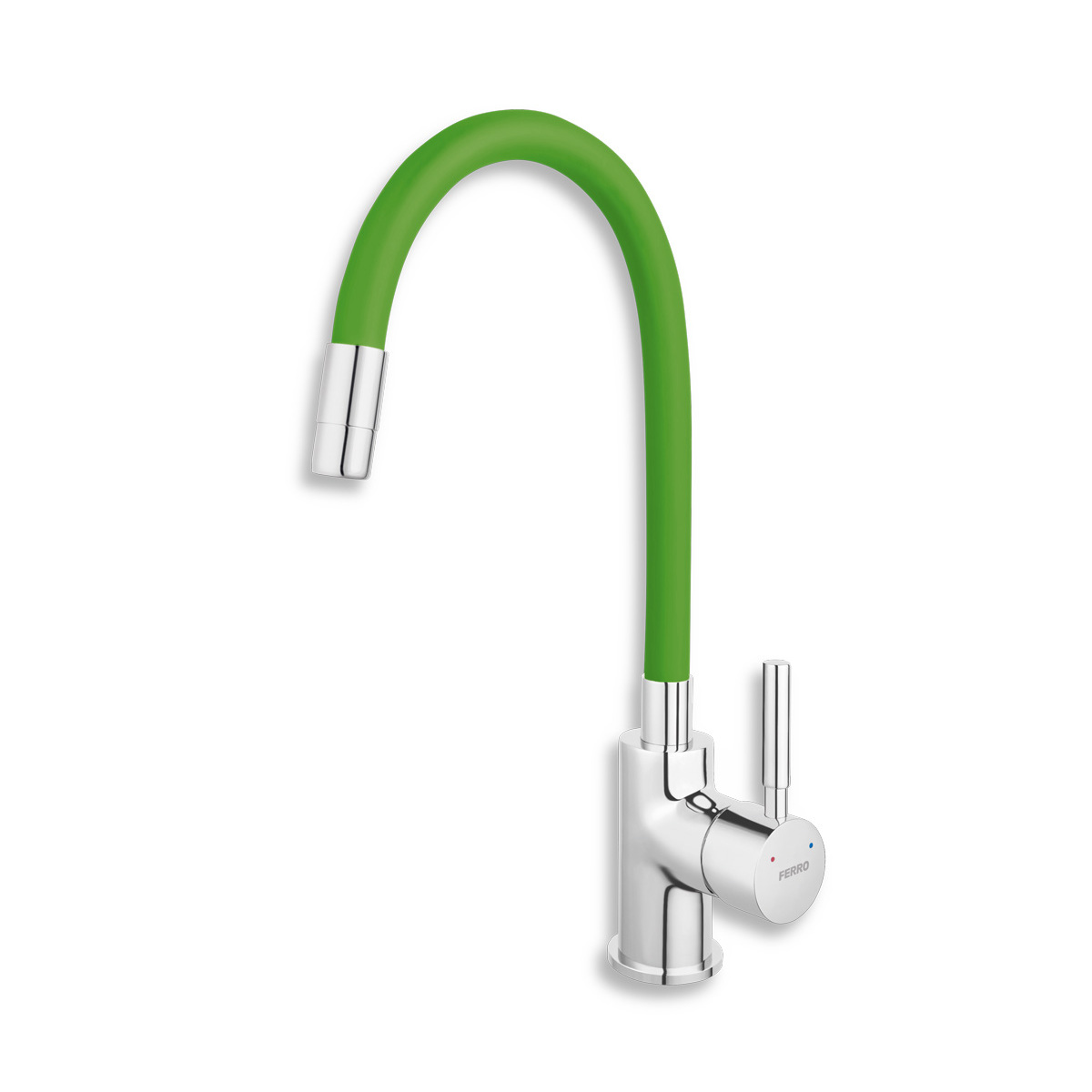 Moderní design v kombinaci s vysokou kvalitou, to je stojánková dřezová baterie Novaservis Ferro s FLEXI ramenem. Svěží zelené provedení ramena doplňují odolné chromové prvky. Na první pohled je jasné, že se tato baterie stane dominantou každé kuchyně. Životnost baterie výrazně prodlužuje také 35mm keramická kartuše.
