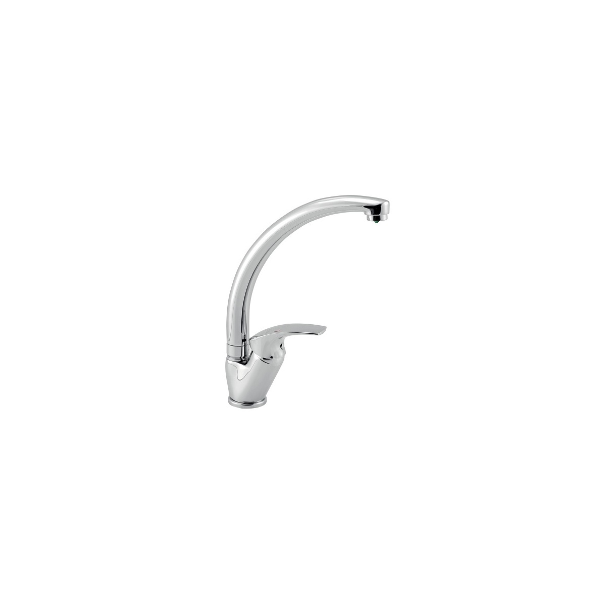 Kvalitní a odolná keramická kartuše. Prvotřídní chromové provedení. Stojánková dřezová baterie s otočným ramenem a délkou 220 mm. Součástí baterie jsou přívodní hadičky.