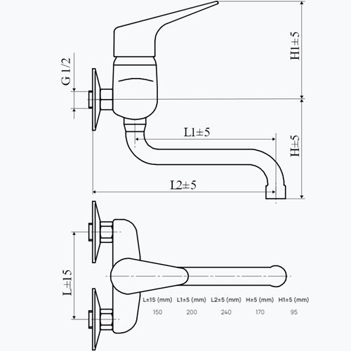 Dřezová baterie TA Tessa 150 mm, chrom, nástěnná, Slovarm 480305, TA.4010.A, rameno 200 mm