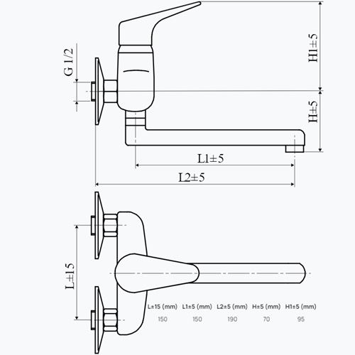 Dřezová baterie TA Tessa 150 mm, chrom, nástěnná, Slovarm 480309, TA.4011.A, rameno 100 mm