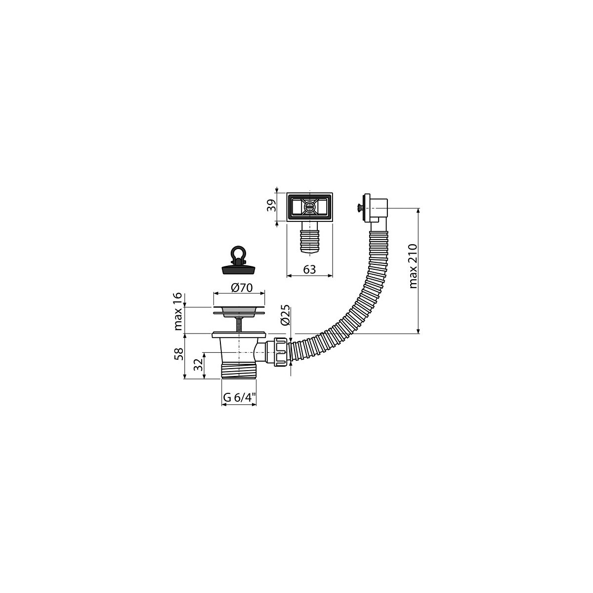 Dřezová výpusť 6/4", nerez mřížka, s flexi přepadem, Alcadrain A331