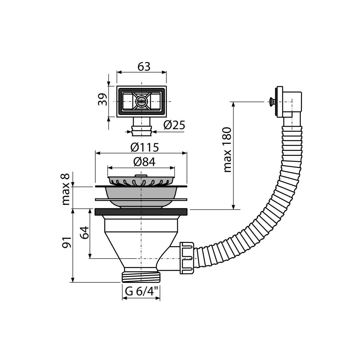 Dřezová výpusť s nerezovou mřížkou s přepadem je praktickým a estetickým doplňkem vašeho dřezu, který zajišťuje spolehlivý odvod vody. Tato výpusť je vhodná pro kuchyňské dřezy s otvorem pro výpust 3 1/2" a přepadem. Dřezová výpusť se jednoduše připojuje k dřezovému sifonu s převlečnou maticí G 6/4". Tělo výpusti je vyrobeno z polypropylenu a mřížka z nerezové oceli.