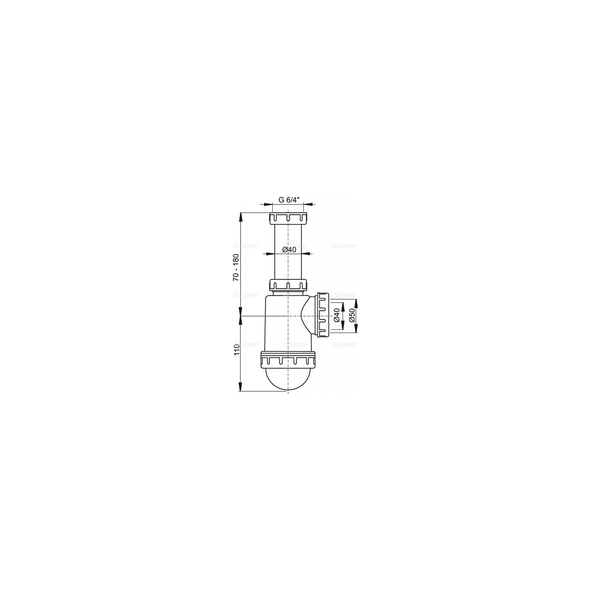 Dřezový sifon A443 bez výpusti G 6/4", odpad 40/50 mm, Alcadrain A443-DN50/40