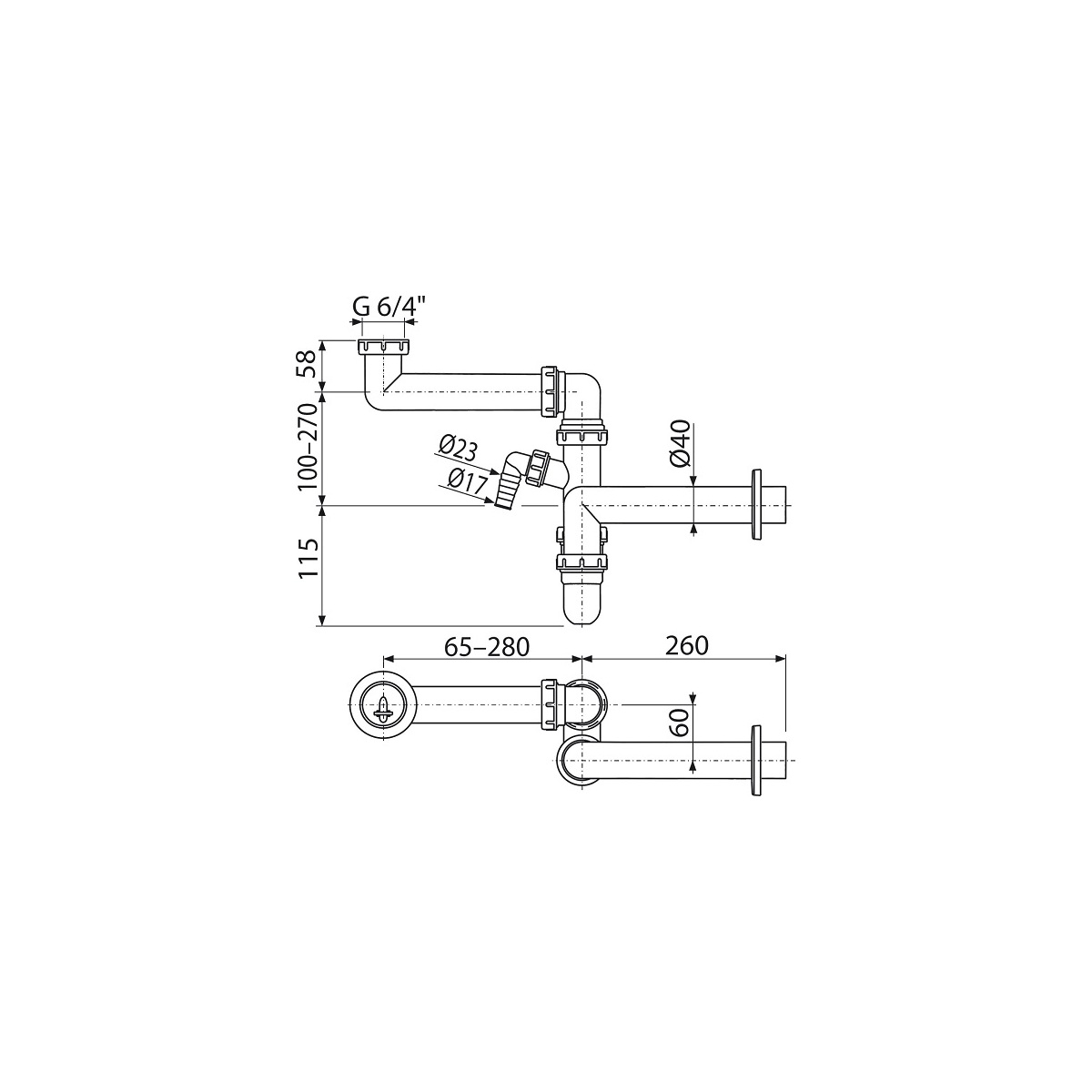 Dřezový sifon A872P bez výpusti G 6/4", odpad 40 mm, s přípojkou, Alcadrain A872P