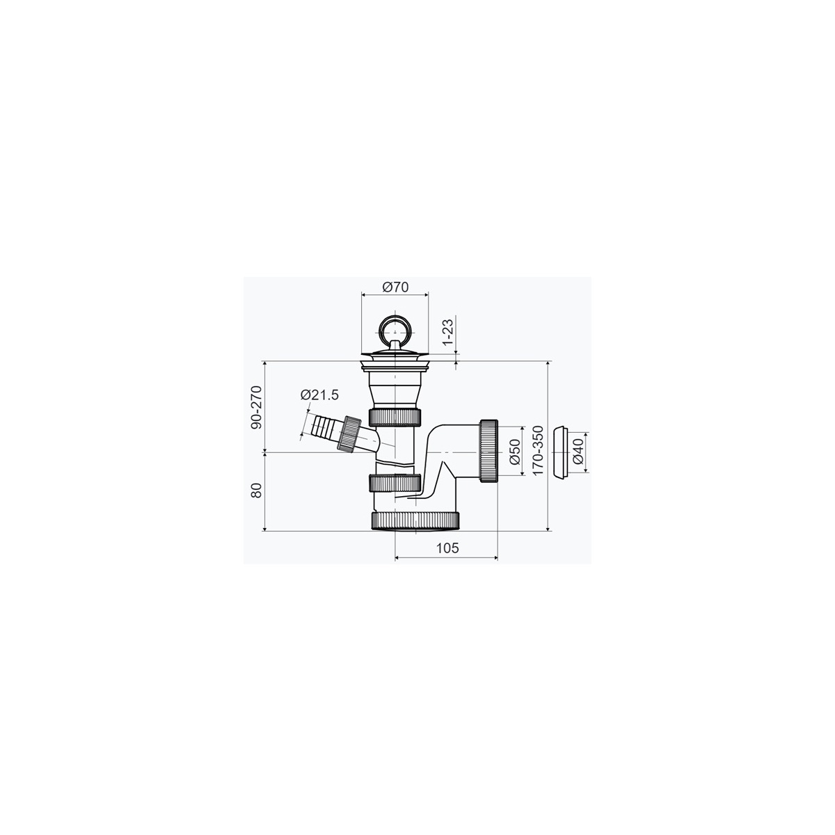Dřezový sifon T-735 s výpustí 70 mm, odpad 40/50 mm, s přípojkou, Slovarm 621002