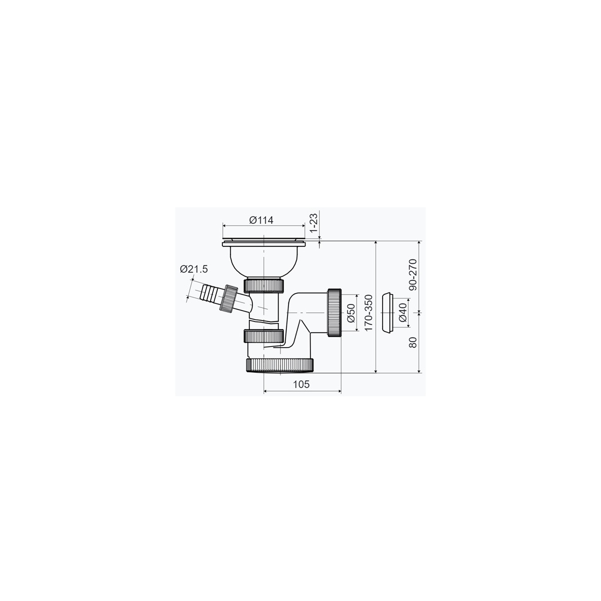 Dřezový sifon T-740 s výpustí 114 mm, odpad 40/50 mm, s přípojkou, Slovarm 621022