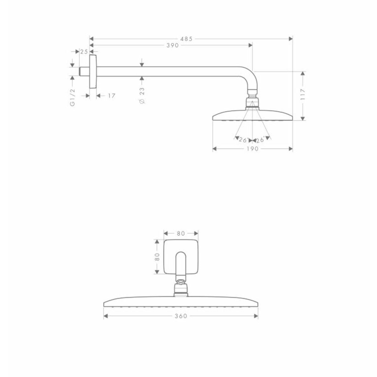 - rozměry sprchové hlavice: 360 x 190 mm