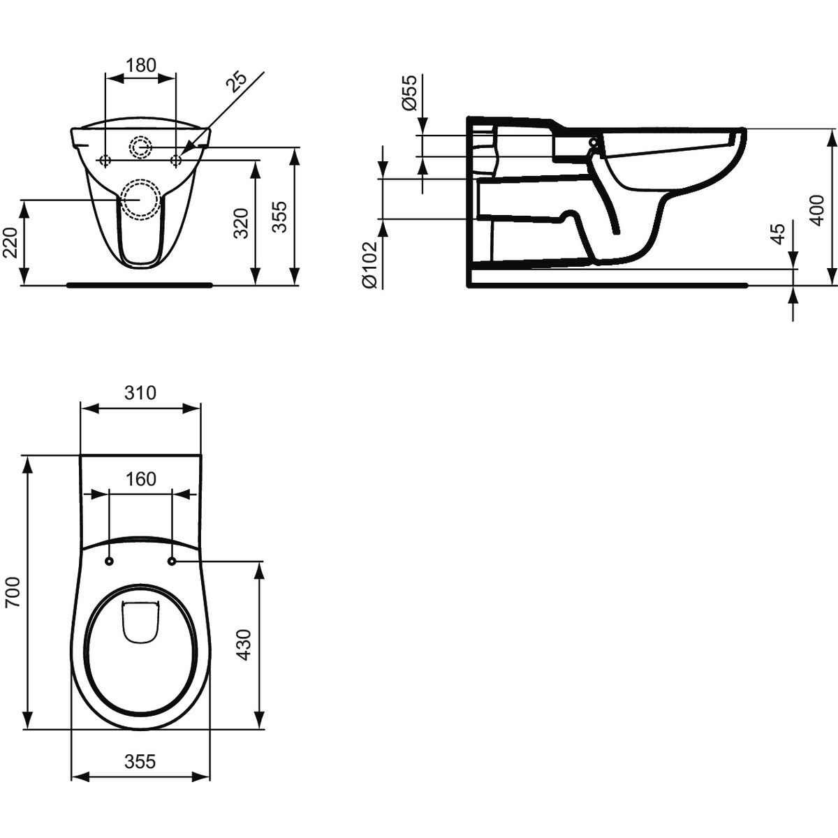 Ideal Standard klozet závěsný Countour 21 , pro tělesně postižené