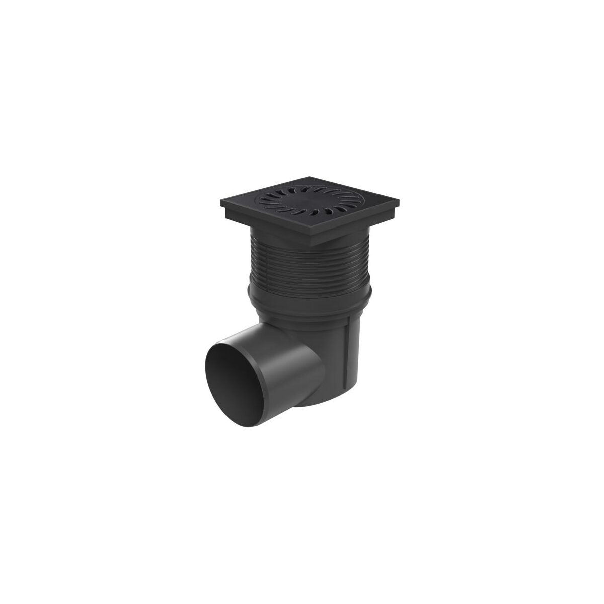 Kanalizační vpusť s bočním odtokem 110 mm, suchá klapka, mřížka litinová černá 150x150 mm, Chuděj 324 S Li, KVB 110 S Li