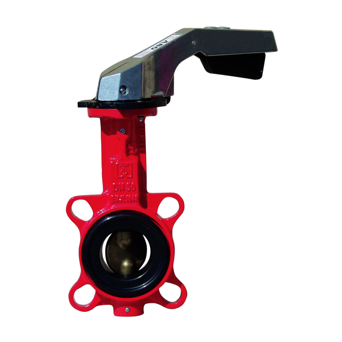 Mezipřírubová centrická uzavírací klapka s pákou.