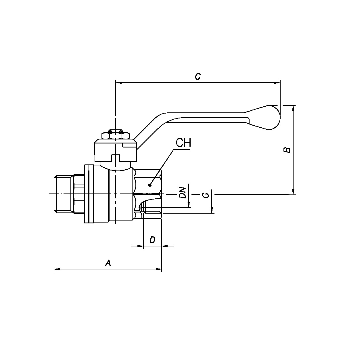 | DN | G | A (mm) | B (mm) | C (mm) | D (mm) |