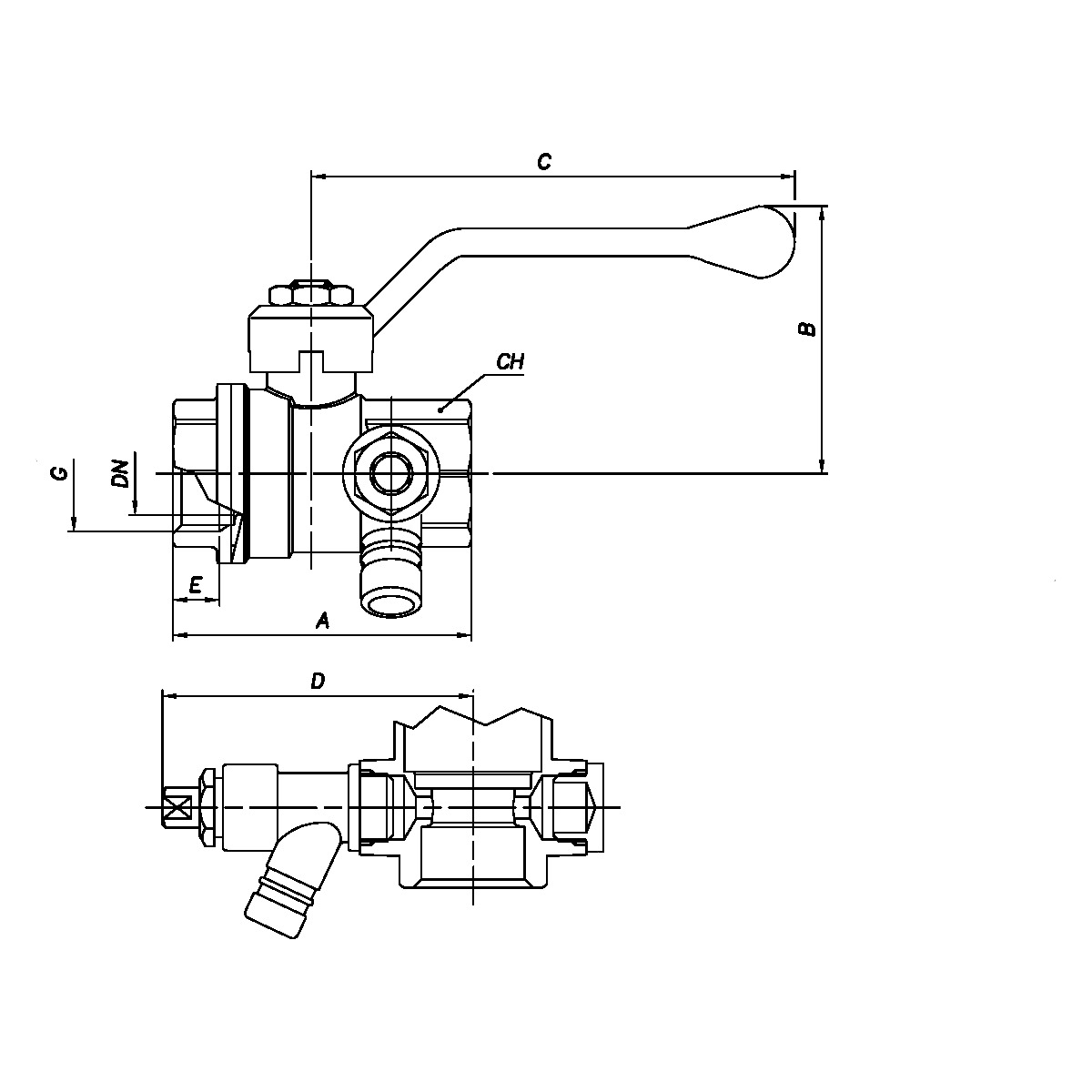 | DN | G | A (mm) | B (mm) | C (mm) | D (mm) | E (mm) |