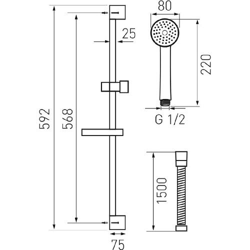 Koupelnová sprchová sada FRESH, 59 cm,sprcha 3S, chrom, Novaservis, SADA96061