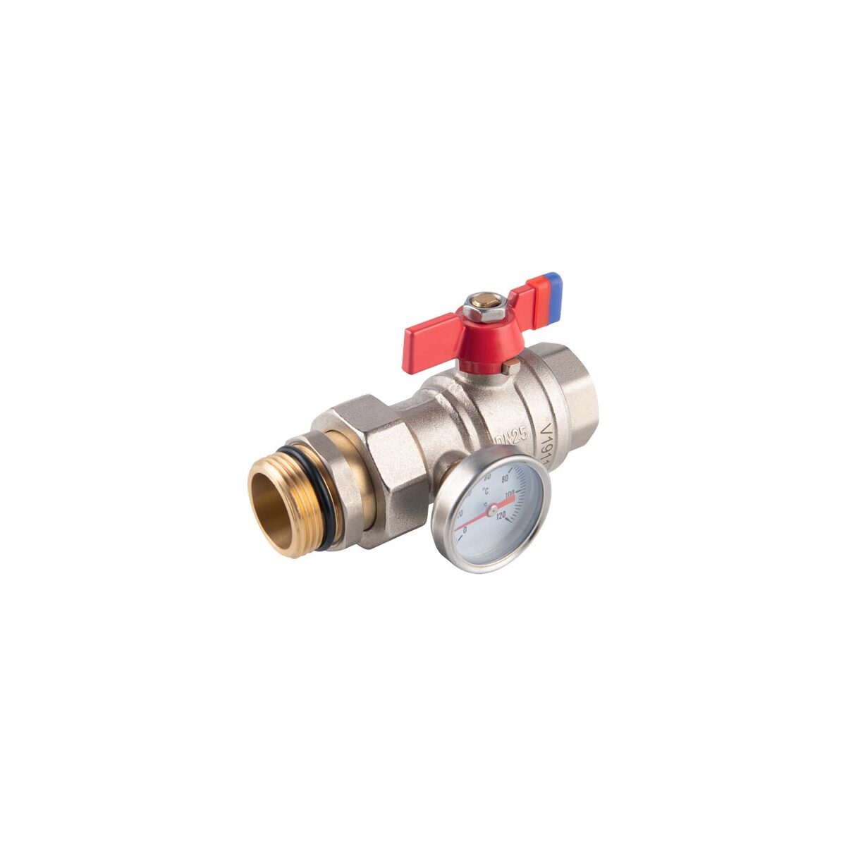 Kulový kohout MF 1", s teploměrem, se šroubením, motýl, voda, Novaservis KFPS3T