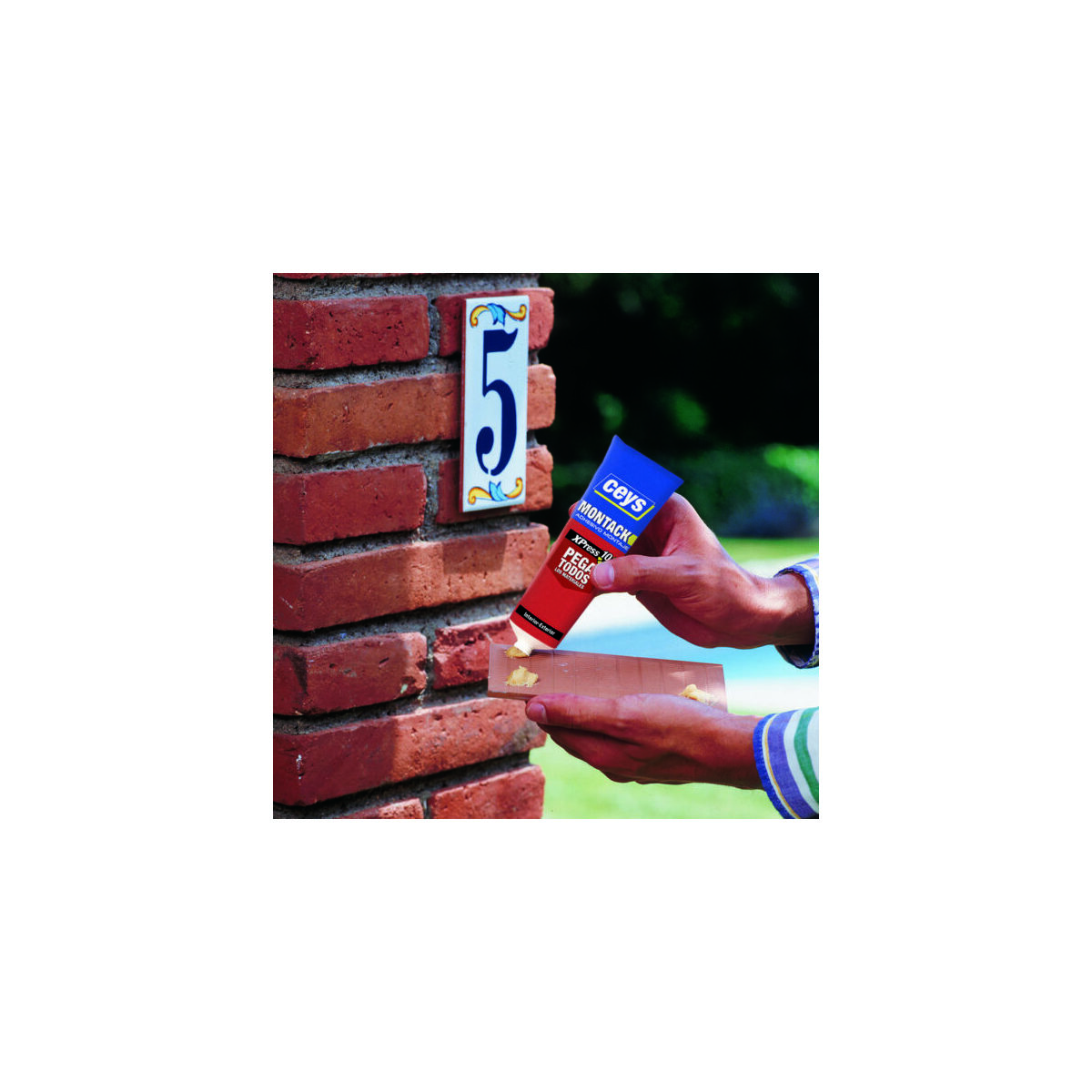 - NANESTE dostatečné množství lepidla Montack Express jeho stlačením na jednu ze spojovaných ploch, a to po tečkách nebo proužcích.