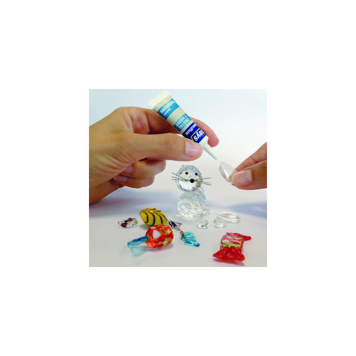 Lepidlo pro rychlé slepení křišťálu a skla mezi sebou nebo s jinými tuhými materiály. Určeno pro lepení rovných nebo dokonale do sebe zapadajících povrchů.