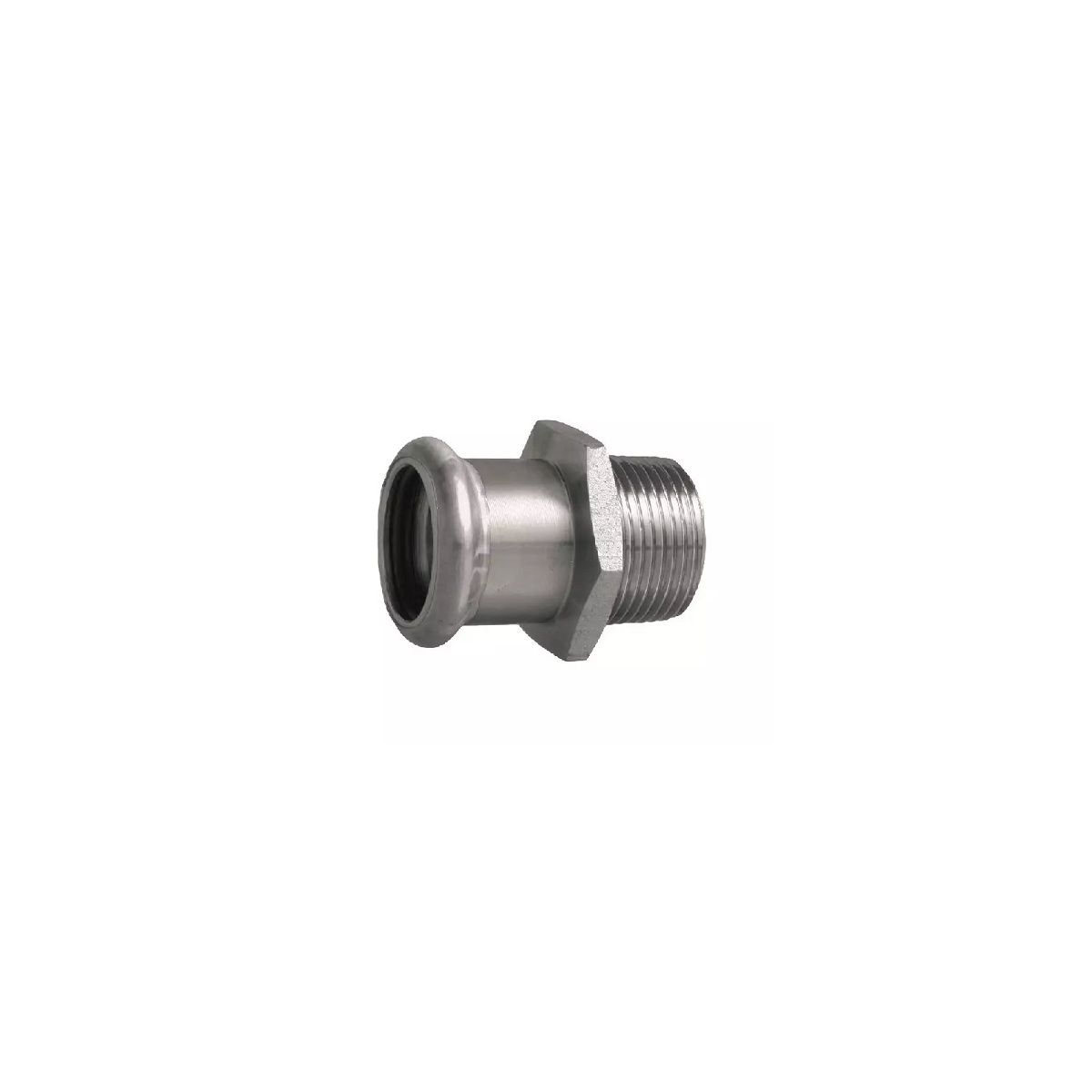 Ocelová lisovací press přechodka s vnějším závitem je určená pro snadný a spolehlivý přechod mezi press potrubím a závitovým připojením. Ideální pro uzavřené rozvody otopných systémů, rozvody suchého tlakového vzduchu, inertních plynů, sprinklerová (trvale zavodněná) zařízení a další průmyslové aplikace. Tato přechodka není vhodná pro rozvody pitné vody a bez povrchové úpravy pro chlazení.