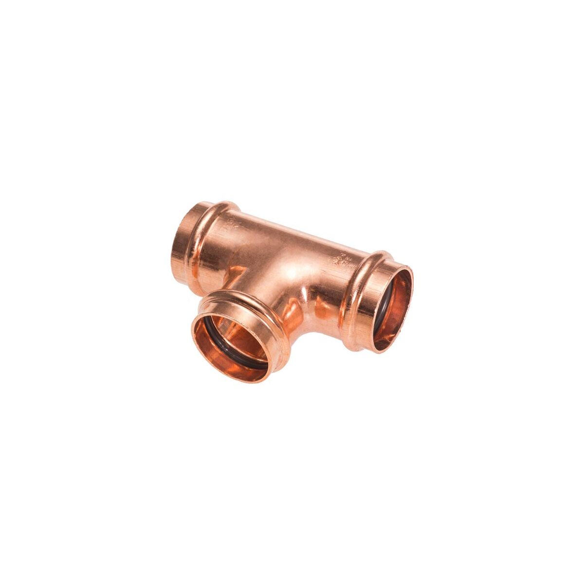 Hrdlový lisovací Press T-kus je vhodný pro potrubní rozvody topení a vody. Díky inovativnímu 3-bodovému lisovacímu systému nabízí bezpečné, trvalé spojení bez potřeby pájení či svařování. Fitinka je vyrobena z vysoce kvalitní mědi, což zajišťuje dlouhou životnost a vynikající odolnost proti korozi.