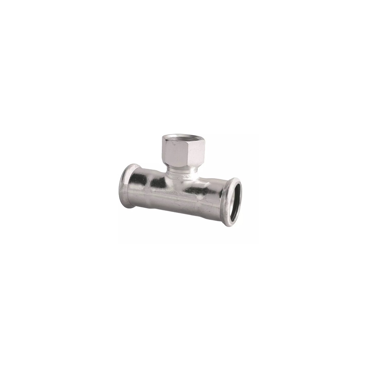 Ocelový lisovací press T-kus s vnitřním závitem je určený pro spojování dvou potrubí stejného rozměru a snadný přechod z press potrubí na závitové připojení. Ideální pro uzavřené rozvody otopných systémů, rozvody suchého tlakového vzduchu, inertních plynů, sprinklerová (trvale zavodněná) zařízení a další průmyslové aplikace. Tento T-kus není vhodný pro rozvody pitné vody a bez povrchové úpravy pro chlazení.
