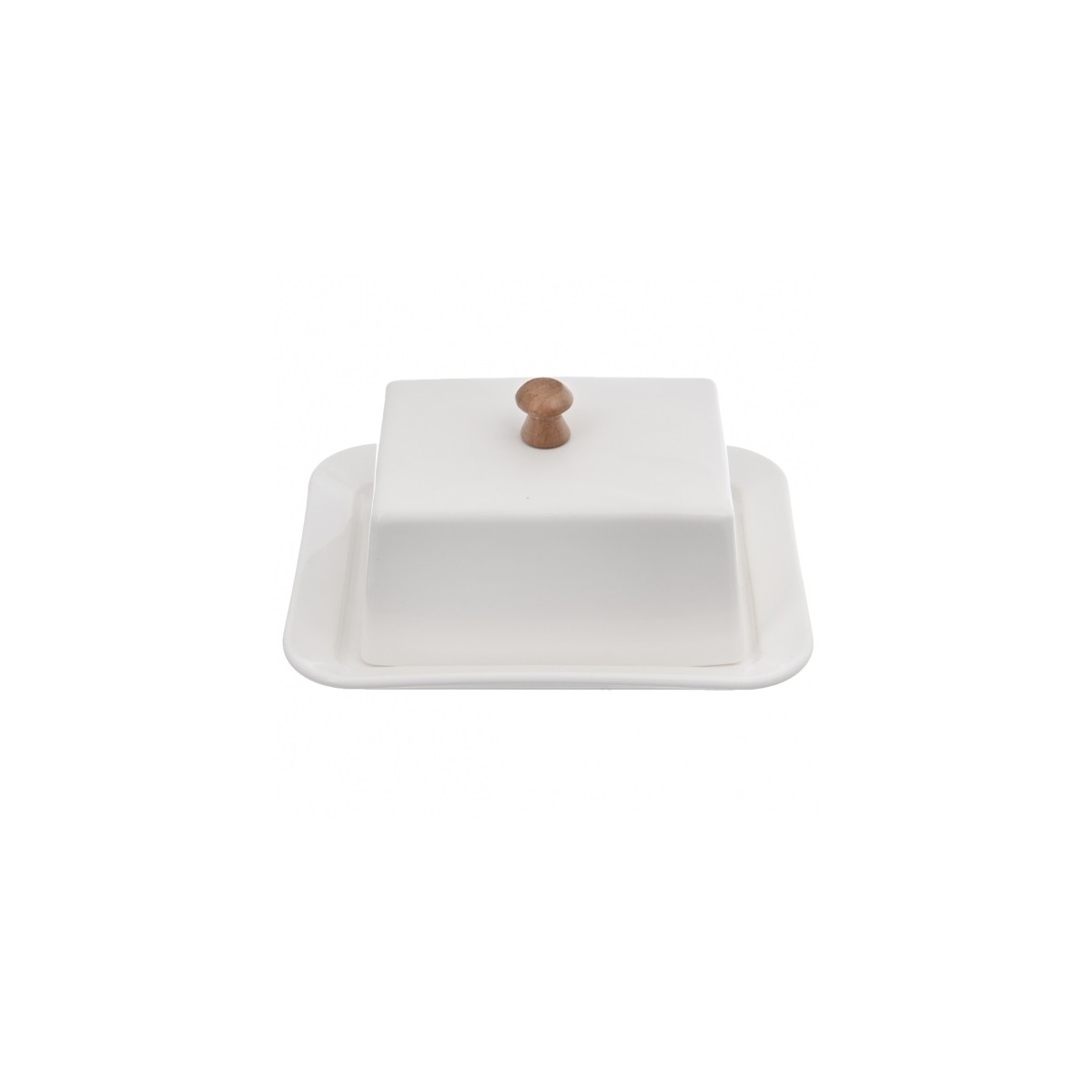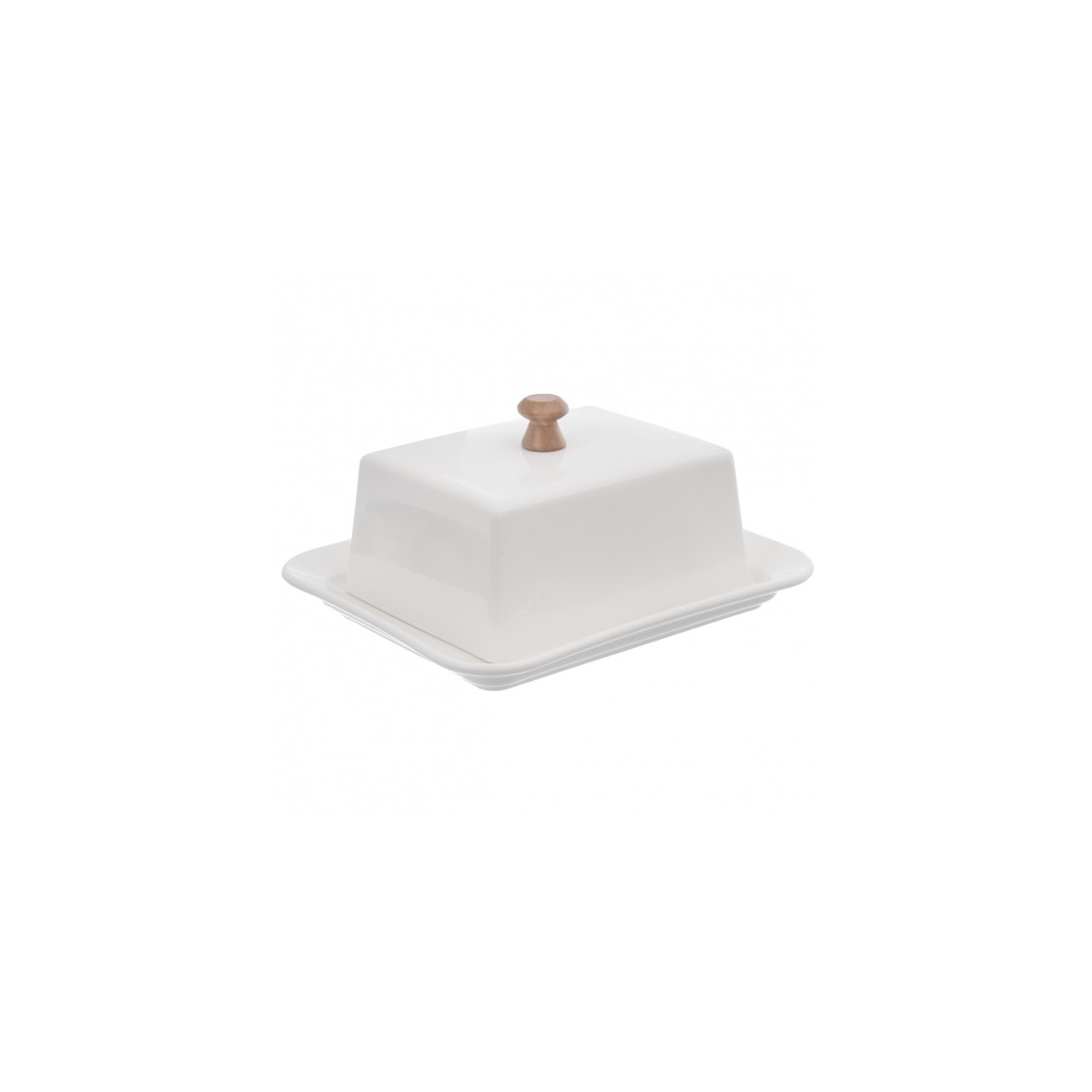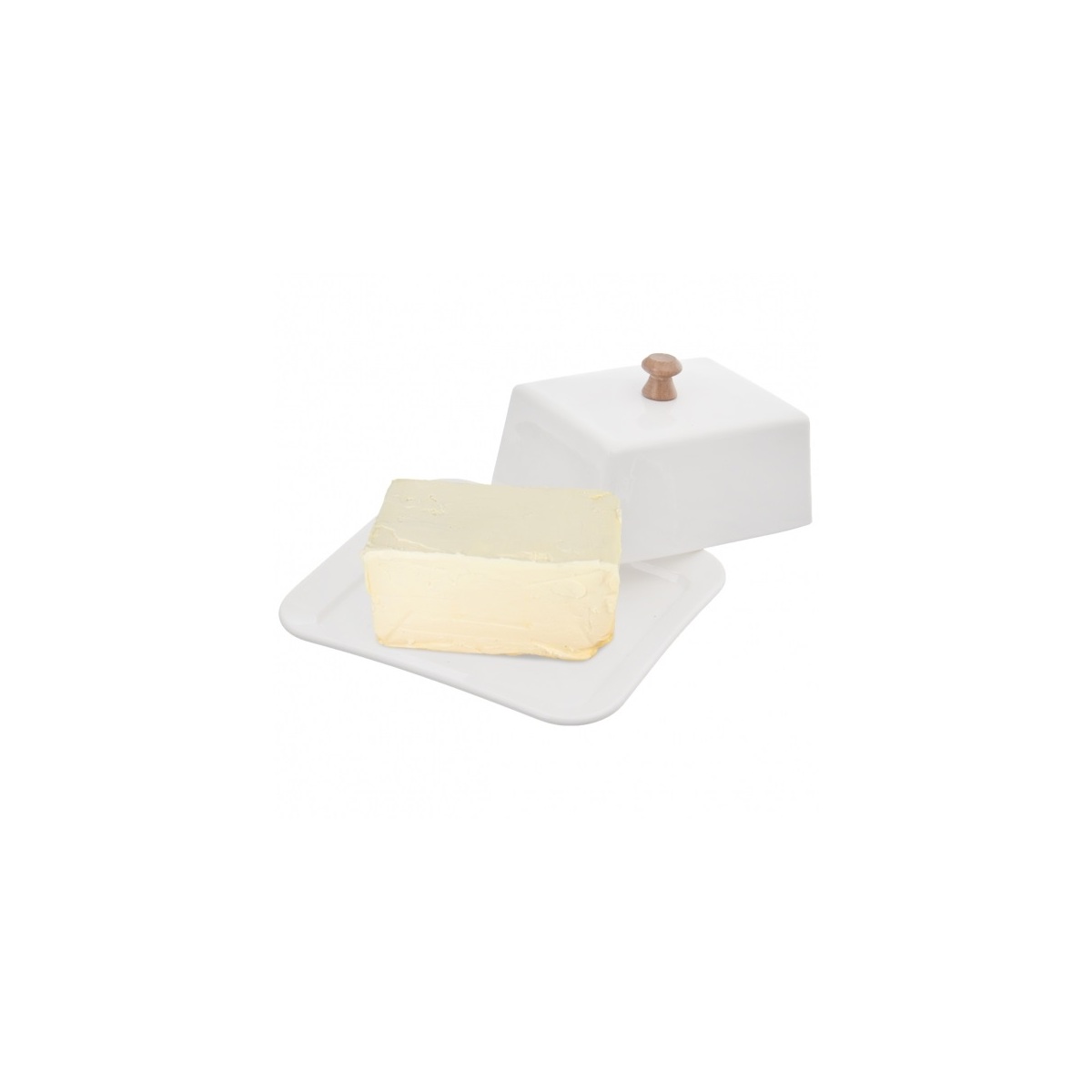 Nepraktické umaštěné obaly od másla, které se navíc při krájení často proříznou, nahradí jednoduše praktická bílá porcelánová máslenka s úchytem z bambusu.