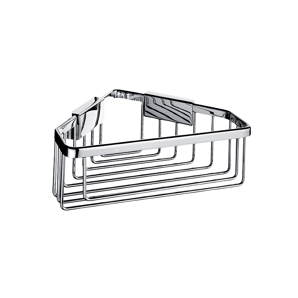 Koupelnová drátěná rohová police se snadným sundáváním a čištěním.