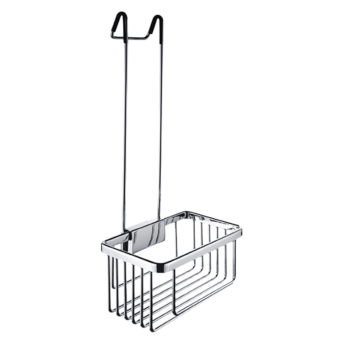 Koupelnová drátěná police s hákem pro zavěšení ve sprchovém koutě.