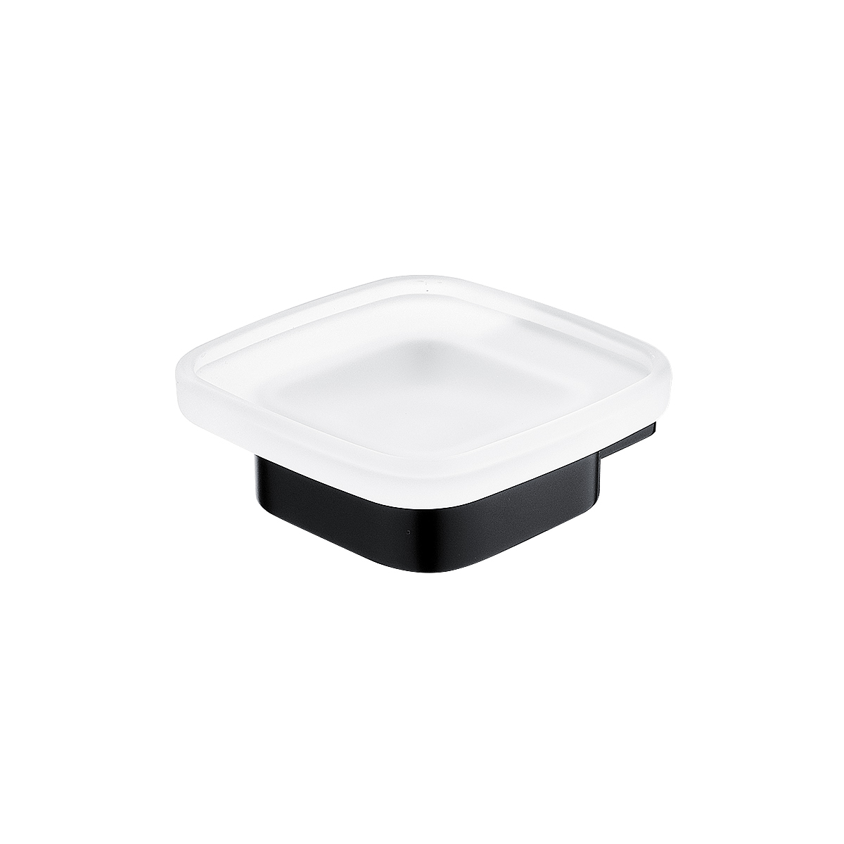 Mýdlenka. Nádobka z matovaného skla. Úchyt mosaz s povrchovou úpravou černý mat.