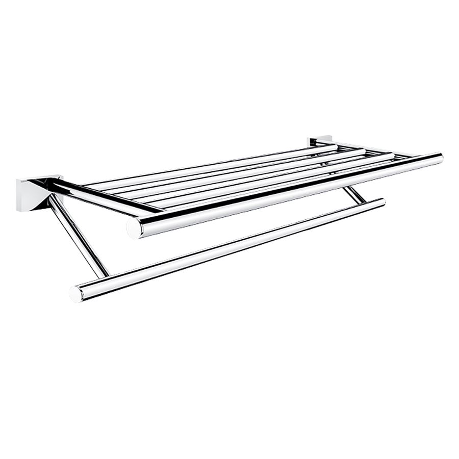 Police na ručníky s hrazdou. Vnitřní šíře pro ručníky 500 mm. Materiál mosaz s povrchovou úpravou chrom.