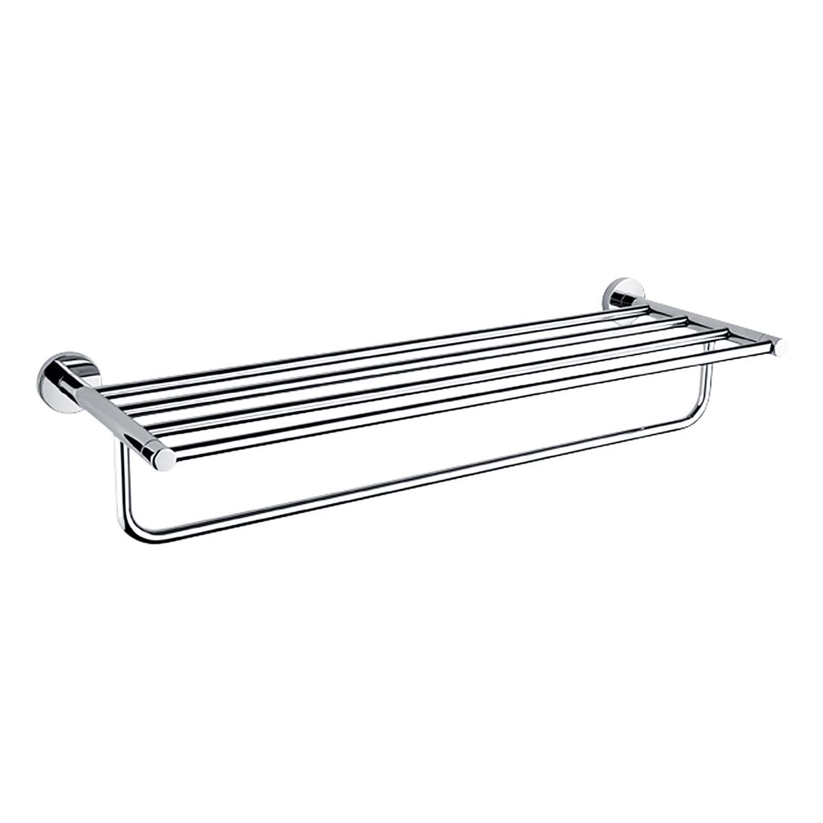 Police na ručníky kombinovaná s madlem pro zavěšení ručníků.