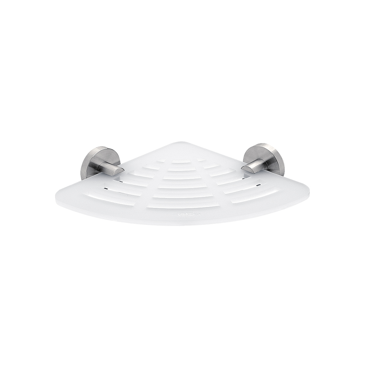 Rohová polička plexiglass s frézováním. Úchyty broušená nerez. Rozměr police 23,5x23,5 cm.
