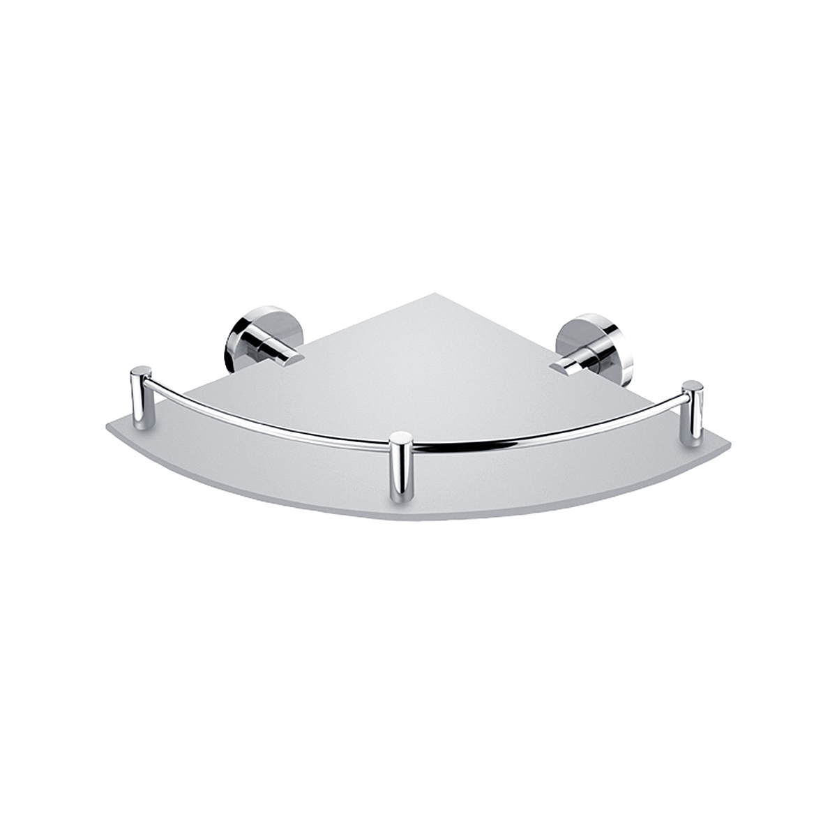 Police rohová s ohrádkou ve skle. Sklo matované. Poloměr skla 25 cm.