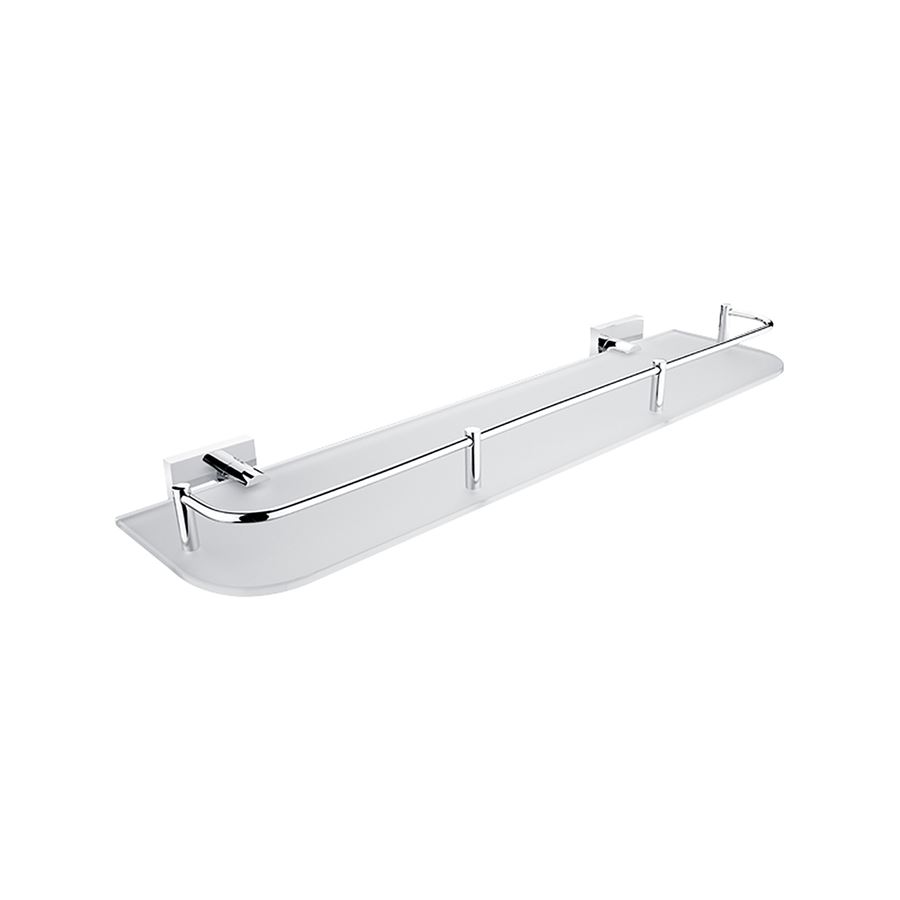 Police s ohrádkou z matovaného skla. Délka 50 cm. Úchyty mosaz s povrchovou úpravou chrom.