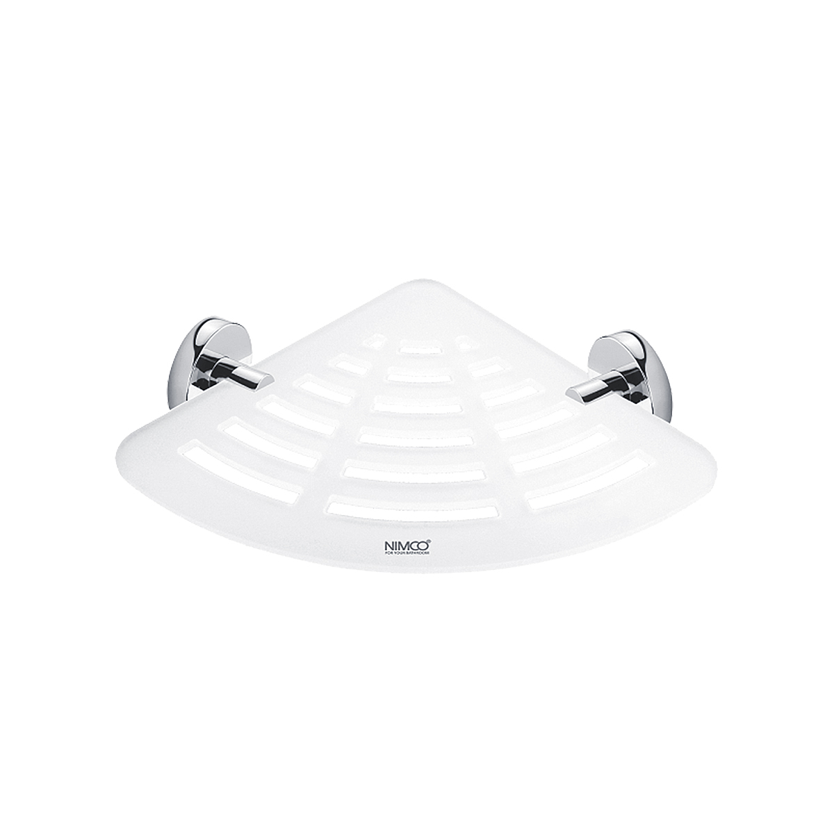 Rohová police s frézováním. Materiál plexiglass. 21x21 cm.