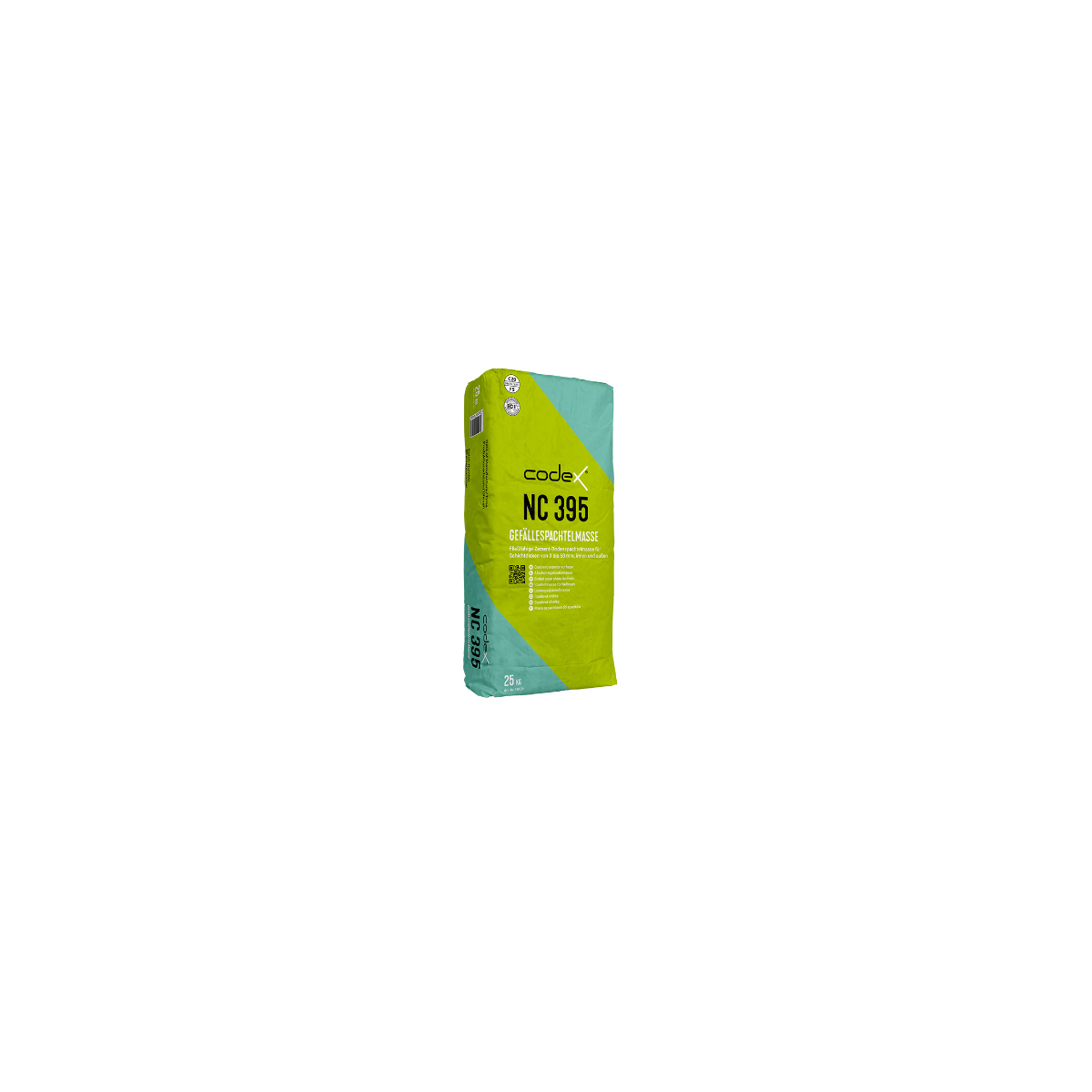 Stěrková hmota codex NC 395 je prášková, polymery obohacená průmyslově vyráběná směs se speciálně vyladěnou střední křivkou zrnitosti. Po rozmíchání s vodou vzniká tekutá, hydraulicky tuhnoucí vyrovnávací hmota pro použití ve vnějším prostředí.