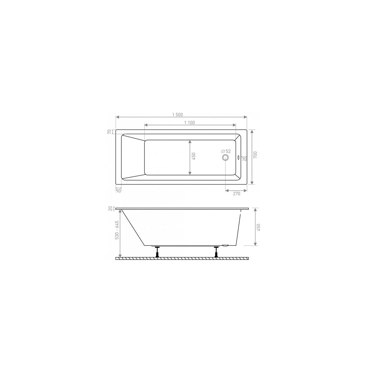 Obdélníková vana EX 150x70 cm, bílá, Lansanit LANEX150X70