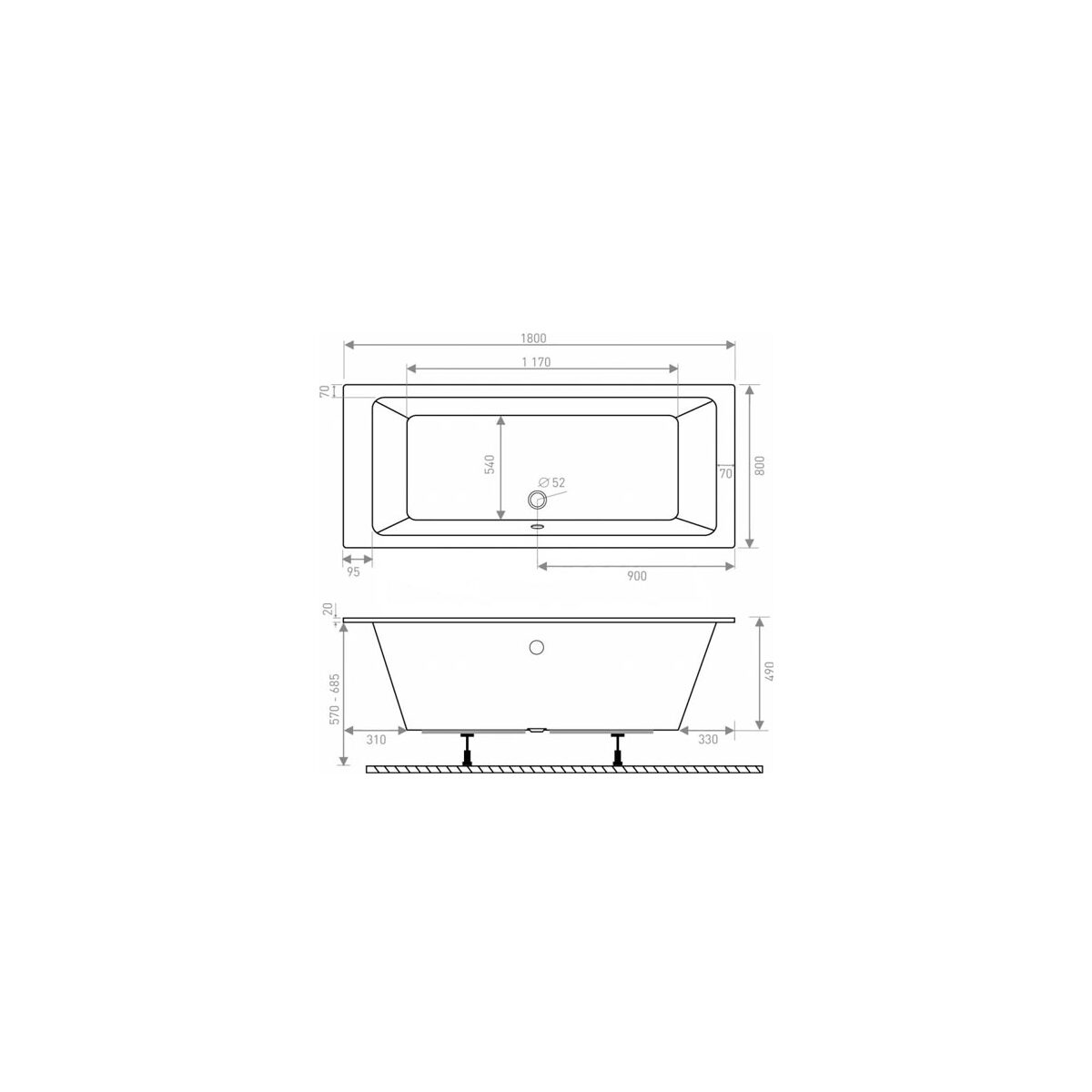 Obdélníková vana EX 180x80 cm, bílá, Lansanit LANEX180X80