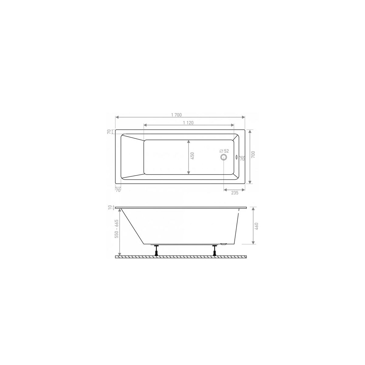 Obdélníková vana LUX 170x70 mm, bílá, včetně nožiček, Lansanit LANLUX170X70