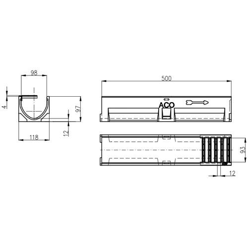 Odvodňovací žlab Euroline, H 100 mm, 0,5 m, A15, pozinkovaný rošt, ACO 3003694