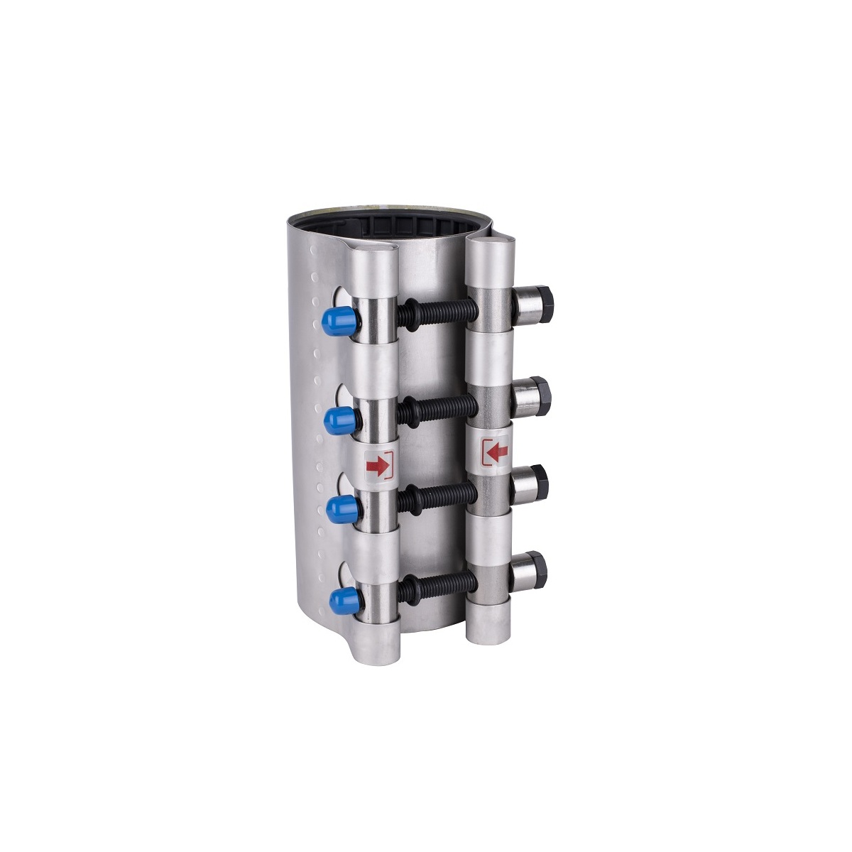Objímka, včetně upínacího systému, je zhotovena z nerezové oceli (AISI 304/AISI 316L), což zaručuje její prakticky neomezenou životnost. Labyrintové pryžové těsnění je z pryže EPDM (na přání NBR/Silicon) a zajišťuje dokonalé utěsnění poruchy nebo spoje. Šrouby jsou rovněž nerezové s povrchovou úpravou PTFE proti zadíraní a pro snazší (de)montáž. Pracovní tlaky jsou max. do 16 bar. Se vzrůstajícím profilem potrubí klesá možnost použití pro maximální pracovní přetlak. Maximální teplota media potrubí je odvislá od druhu pryžového těsnění.