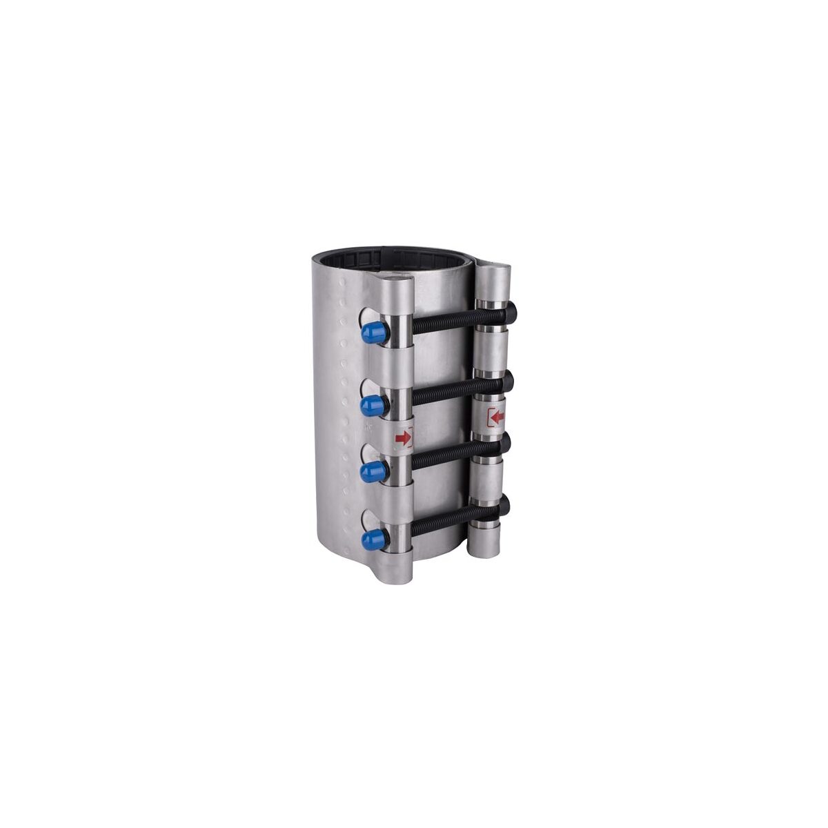 Objímka, včetně upínacího systému, je zhotovena z nerezové oceli (AISI 304/AISI 316L), což zaručuje její prakticky neomezenou životnost. Labyrintové pryžové těsnění je z pryže EPDM (na přání NBR/Silicon) a zajišťuje dokonalé utěsnění poruchy nebo spoje. Šrouby jsou rovněž nerezové s povrchovou úpravou PTFE proti zadíraní a pro snazší (de)montáž. Pracovní tlaky jsou max. do 16 bar. Se vzrůstajícím profilem potrubí klesá možnost použití pro maximální pracovní přetlak. Maximální teplota media potrubí je odvislá od druhu pryžového těsnění.