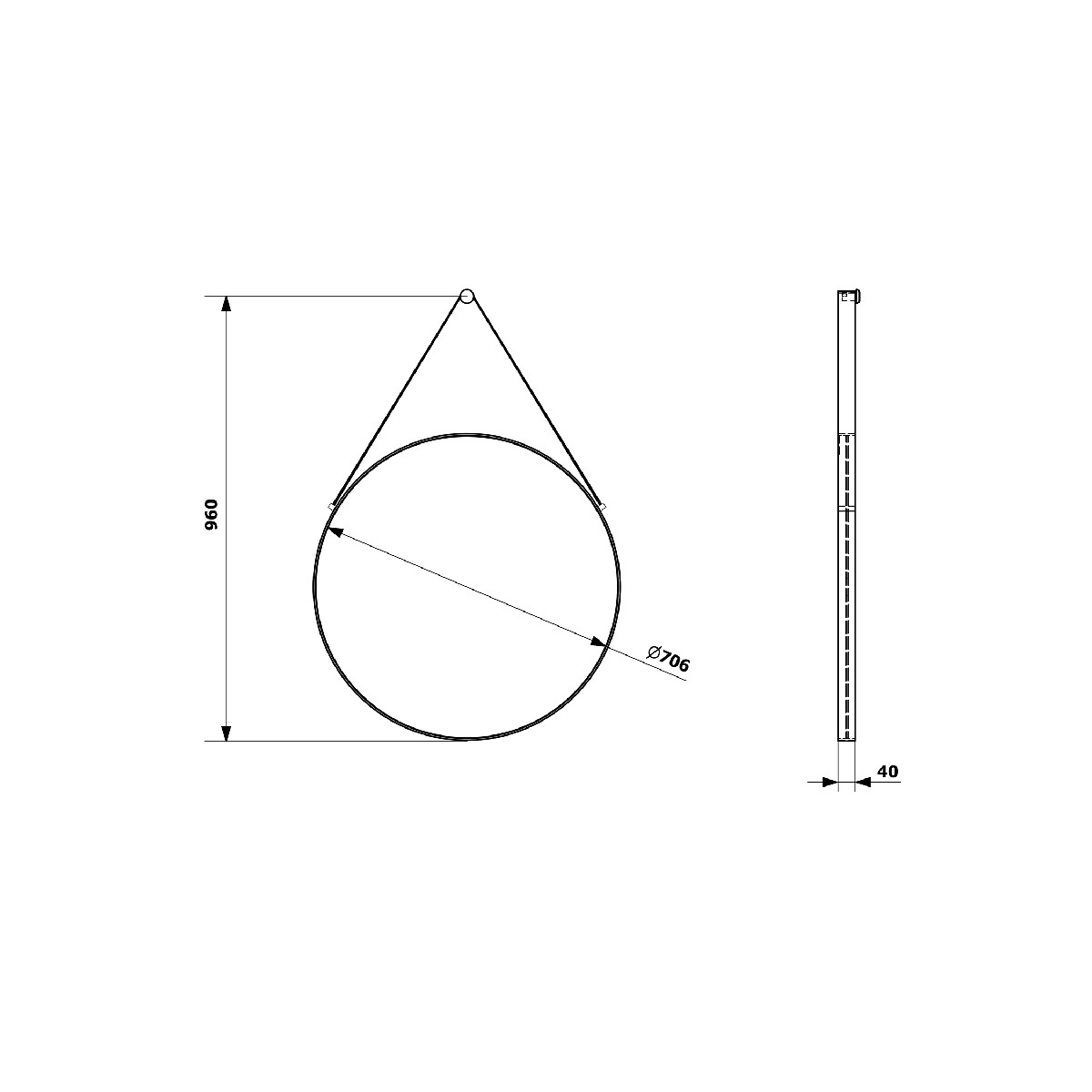 Orbiter kulaté zrcadlo 700 × 700, s koženým páskem, černé, Sapho ORT070