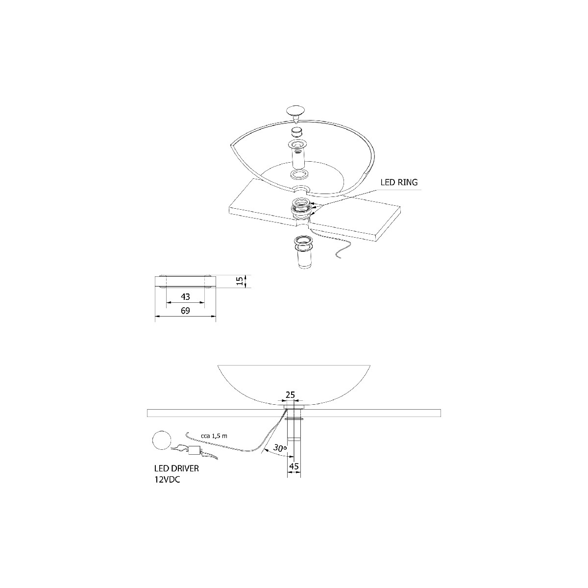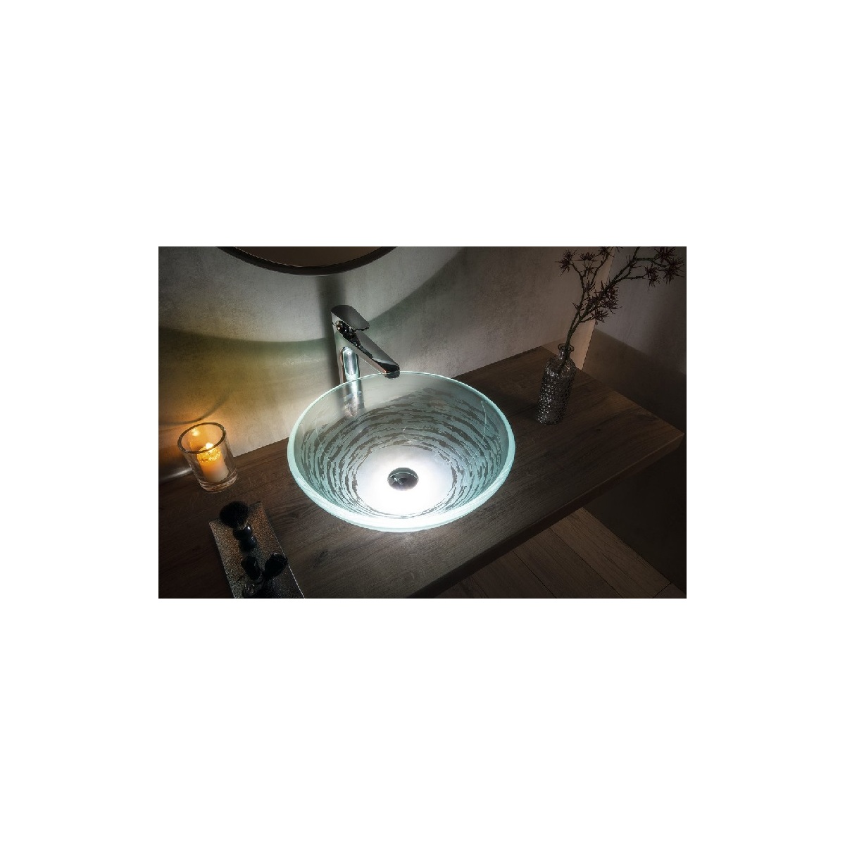 Krása skleněných umyvadel naplno vynikne až průchodem světla přes jejich stěnu. Světelný kroužek má na obou stranách průhledné těsnění a jednoduše se instaluje na odpad umyvadla. Je vyroben z průhledného akrylátu a vyzařuje světlo směrem do umyvadla a pod umyvadlo.