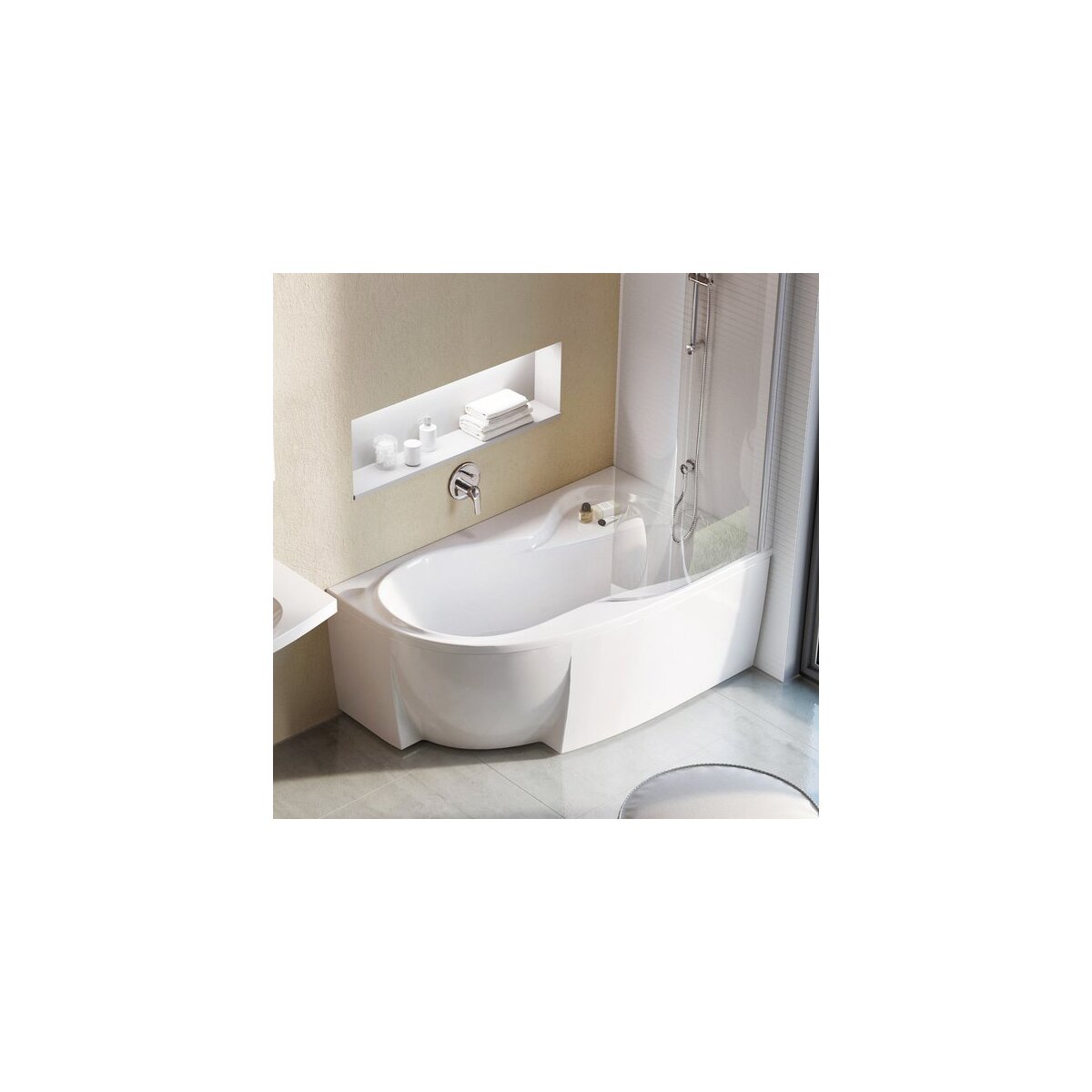 Asymetrickou vanu Rosa 95 nemusíte obkládat zdivem a keramikou, stačí si k ní koupit krycí akrylátový panel. Panel nainstalujete kolem vany během pár minut, přičemž ukrytý prostor zůstává kdykoliv přístupný.