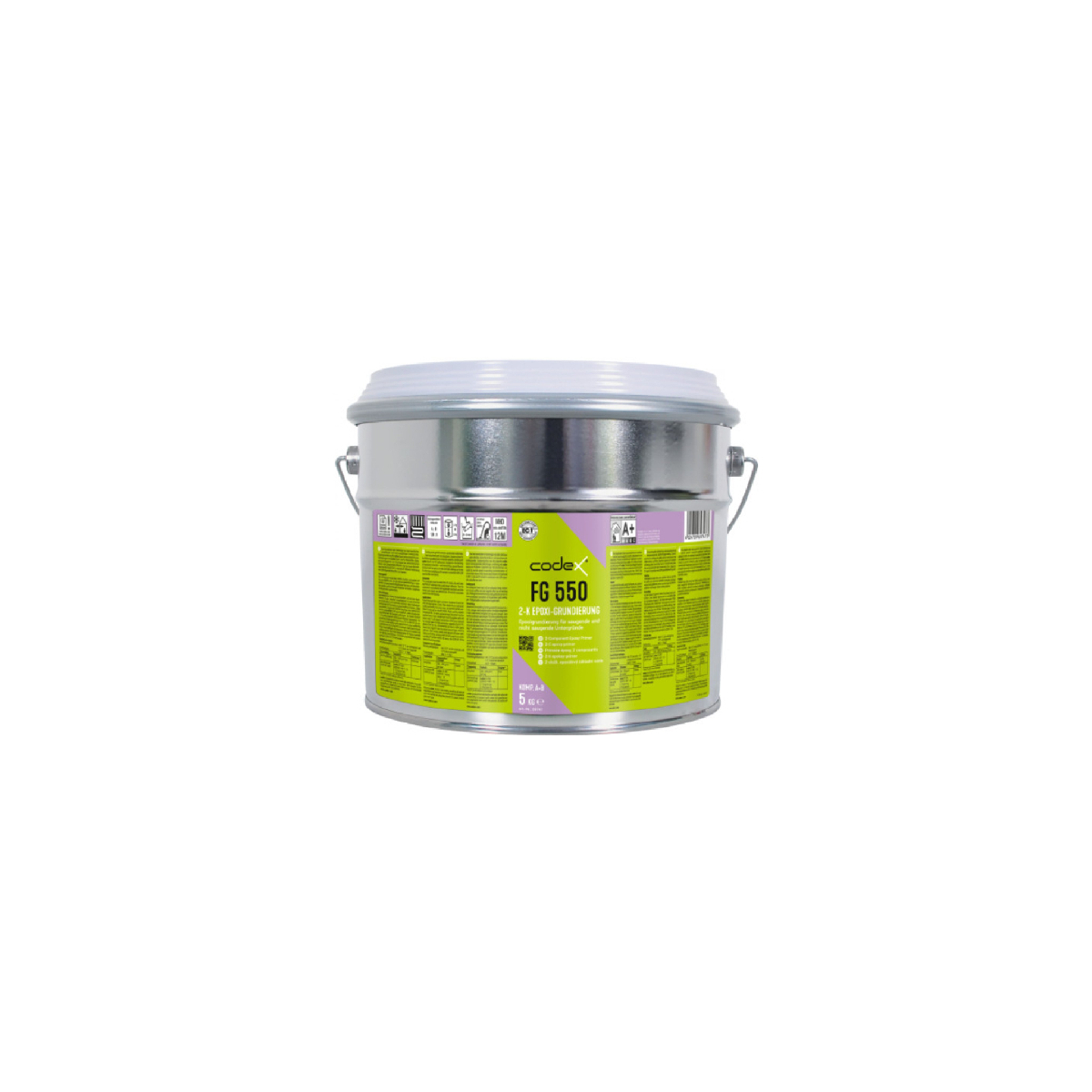 Epoxidový před nátěr s velmi nízkými emisemi, vhodný na všechny běžné stavební podklady, a to nasákavé i nenasákavé. Jedná se o systémovou složku epoxidového programu codex, tedy pod epoxidové lepidlo, hydroizolaci nebo PU-lepidlo codex Fliesopur. Codex FG 550 lze použít i jako bariéru proti pronikající vlhkosti z betonových a potěrových ploch nebo u nových betonových stropů se zvýšenou zbytkovou vlhkostí. Využít lze codex FG 550 i jako pojivo pro zhotovení epoxidových zálivkových hmot (při současném uzavření kapilarity) nebo epoxidových malt a stěrek. Je třeba doplnit ještě vhodná speciální plniva a písky z produkce UZIN. Do vnitřního i vnějšího prostředí. DGNB: Nejvyšší stupeň kvality 4dle kritéria DGNB ENV 1.2rizika pro lokální životní prostředí