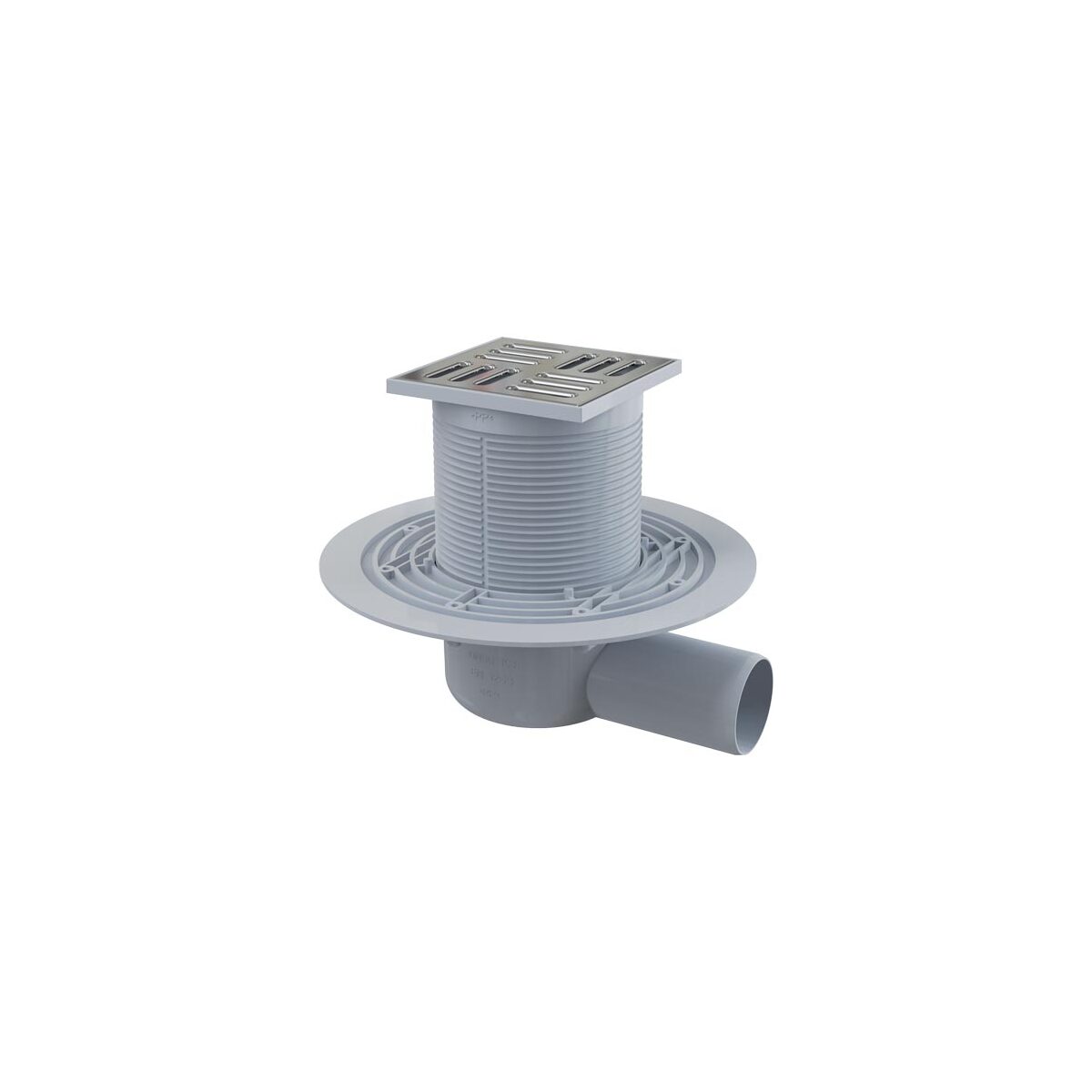 Plastová podlahová vpusť s nerezovou mřížkou, bočním odtokem a vodní zápachovou uzávěrou
